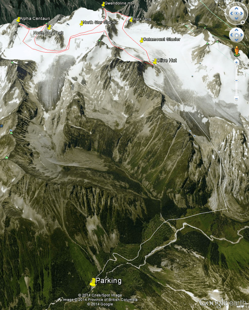 This weekend I wanted to ski North Star Peak in the Purcells. For the longest time I was going to bushwhack straight up the North Star Glacier drainage creek, but then I learned of a hut nearby and started to think, maybe I can ski more than just North Star for the day.